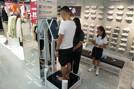 据了解,“快乐运动服务站”的亮点之一,是店内配备的专业级3D足型检测仪器。这项服务的引入,改变传统“凭感觉、试尺码”的购鞋模式,解决消费者因脚型特殊而选鞋困难的痛点。这标志着贵人鸟的关注点,已从“如何卖出一双鞋”,转变为“如何为顾客找到最适合的那一双鞋”,真正践行以消费者为中心的服务承诺。