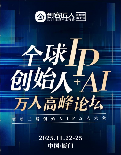 在这个充满不确定性的时代,总有一部分人能够率先洞察趋势、把握先机。2025年11月22日至25日,由创客匠人主办的“全球创始人IP+AI万人高峰论坛”将在厦门举行,这场盛会以"创始人IP+AI"为核心主题,旨在汇聚渴望通过个人品牌与人工智能实现突破的创业者与企业家,共同探索个人商业发展的新路径。