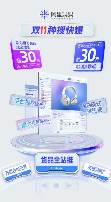 平台爆单的同时,商家也火热参与阿里妈妈双11系列提效活动。双11大促全周期阿里妈妈累计投入超30亿补贴,超30万商家火热报名「双11质赢」系列活动,其中,超10万商家积极完成目标,单商家至高获得200万,GMV同比增长超50%。
