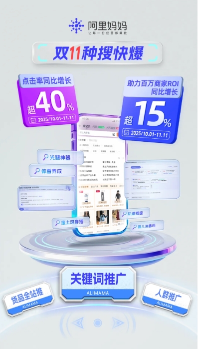 关键词推广助力百万商家ROI同比增长超15%,点击率同比增长超40%