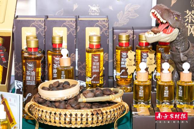 活动现场,茶籽润肤沐浴乳、花果树茶籽柔润护手霜、山茶籽去屑护发洗发粉、山茶籽牙膏等四款河源山茶油加工产品惊艳亮相。