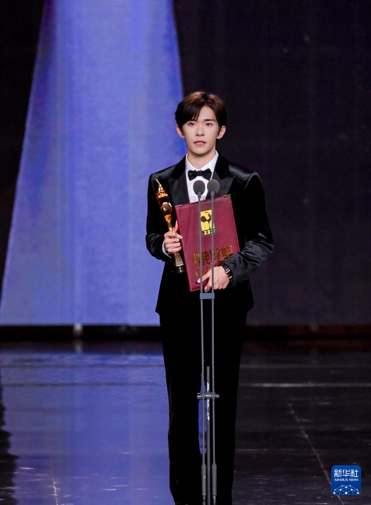 11月15日,易烊千玺凭借在影片《小小的我》中饰演刘春和获得最佳男主角奖。新华社记者 周义 摄