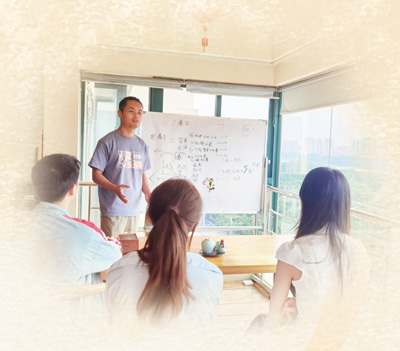 黄清穗(左二)和团队成员在讨论纹样。 |