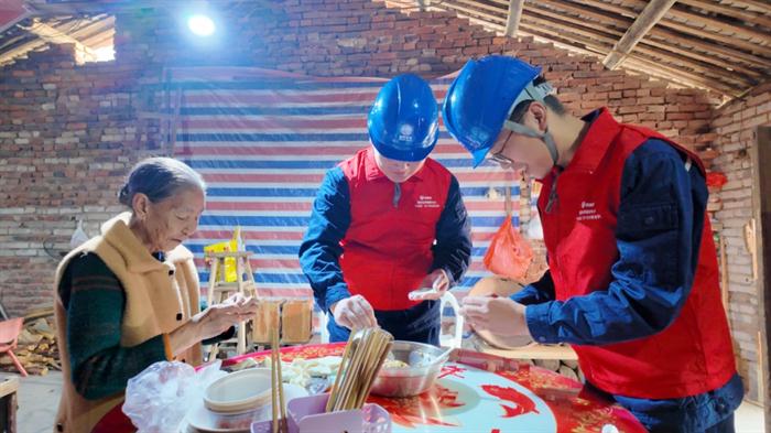 本次活动由福建省劳动模范吴昌晖带队,共产党员服务队队员们深入独居老人家中,开展精准化关爱服务。针对老年群体对用电知识接受度特点,队员们用亲切的本地方言开展家庭用电安全宣讲,让复杂知识变得通俗易懂,并为老人家更换老化破损的电灯、插座等部件,与独居老人围坐一起包水饺,拉家常、话冷暖,在欢声笑语中传递亲人般的陪伴,用“电力温度”为老年人幸福晚年筑牢安全防线。