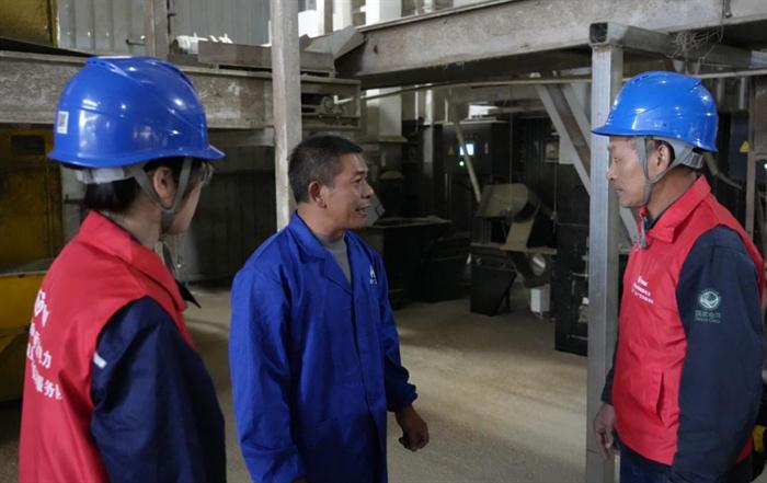 服务队队员与合作社负责人沟通粮食加工用电新需求 蔡政摄