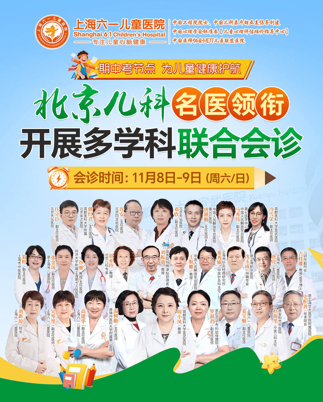 【京沪名医携手】11月8日-9日上海六一儿童医院特邀北京宣武医院周小凤教授,为疑难病儿童精准施策,告别无效努力!