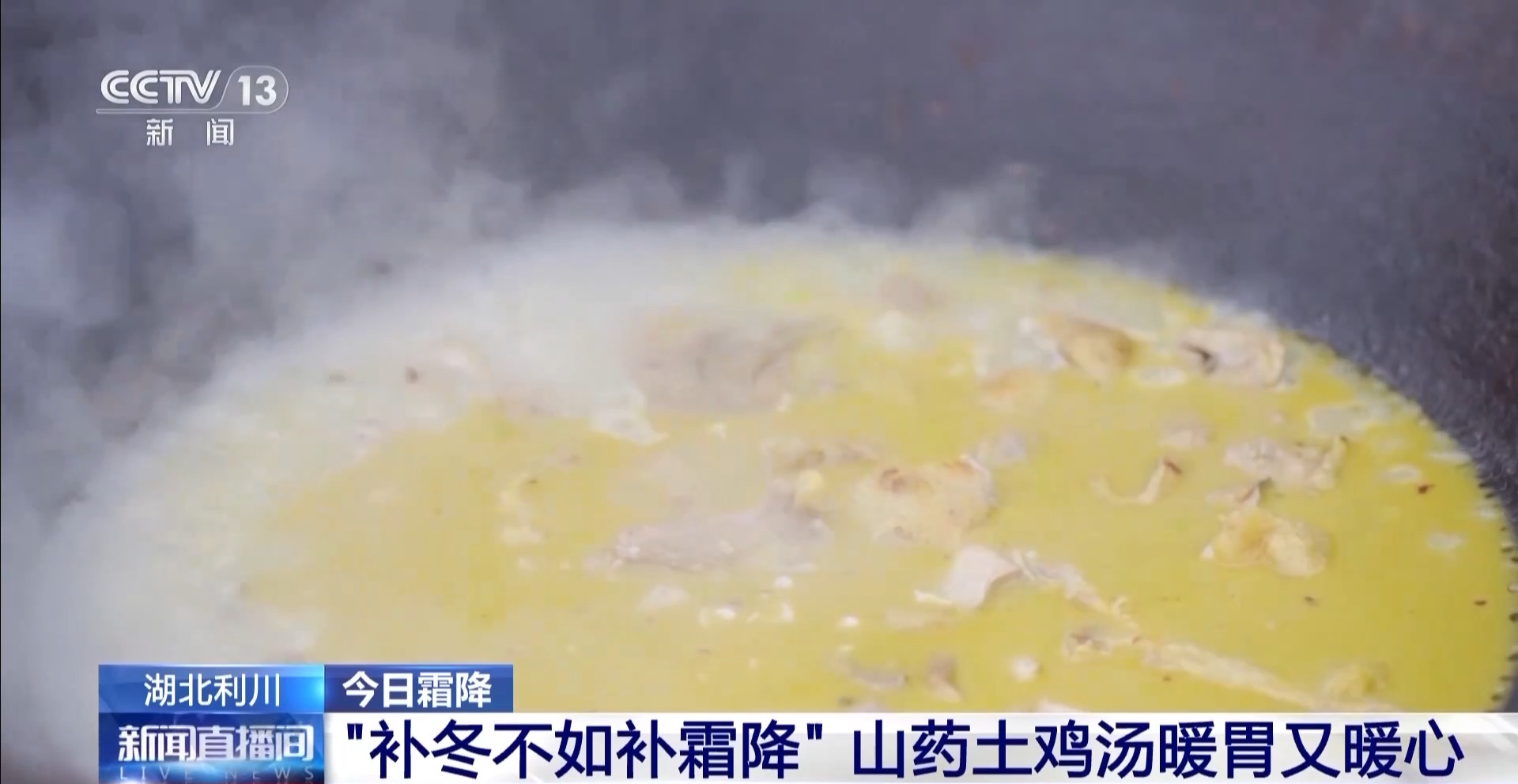 霜降节气的到来意味着气温越来越冷,天气也越来越干燥。秋冬交替季节,要注意润燥驱寒。在湖北利川,当山间新鲜出土的红皮山药,遇上武陵山区的散养土鸡,一碗咕嘟冒泡的暖汤,成了当地人驱散秋寒的滋补佳品。