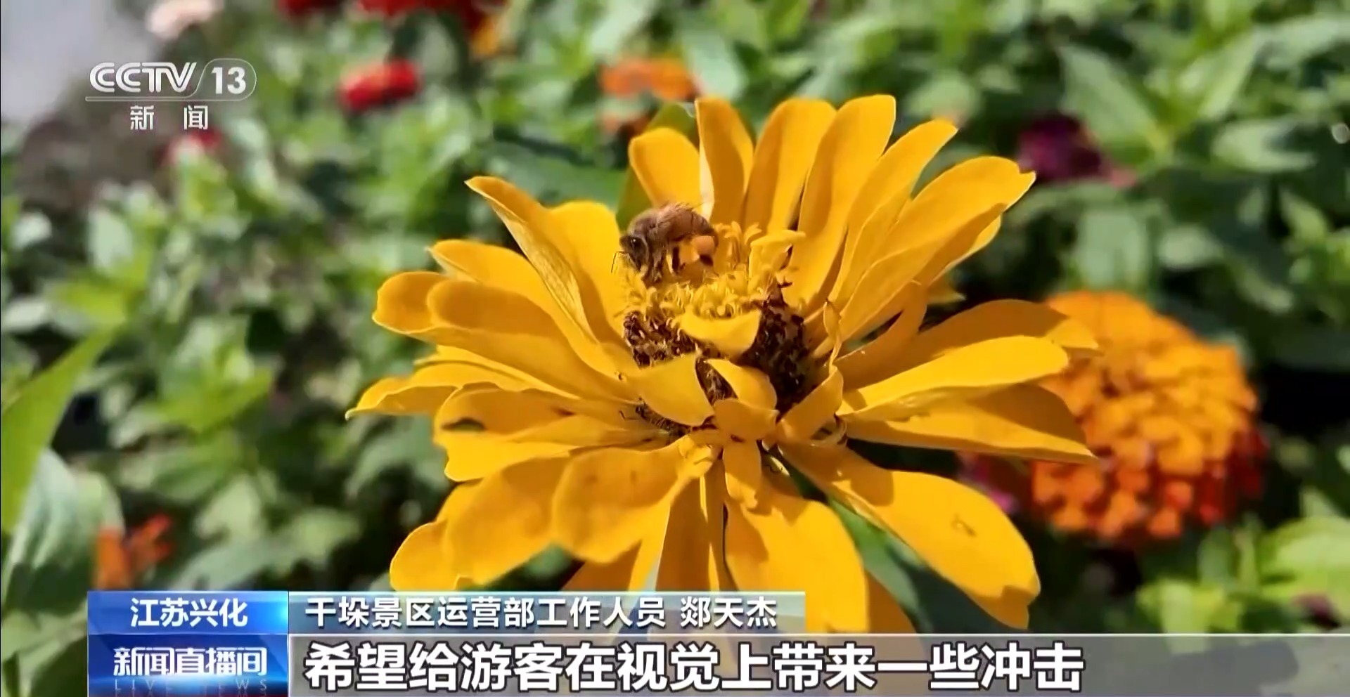 千垛景区运营部工作人员郯天杰:今年新增了香菊、波斯菊、格桑花和百日菊,希望给游客在视觉上带来一些冲击。