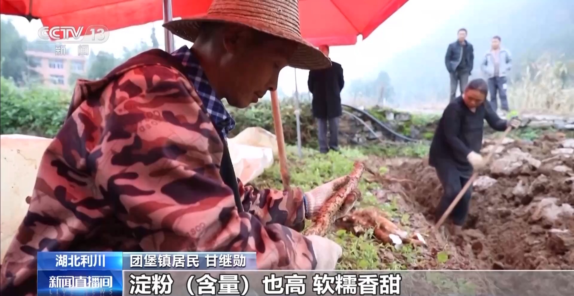 一大早,湖北利川市团堡镇的山药地里一派热闹景象,居民们正忙着挖特色红皮山药。