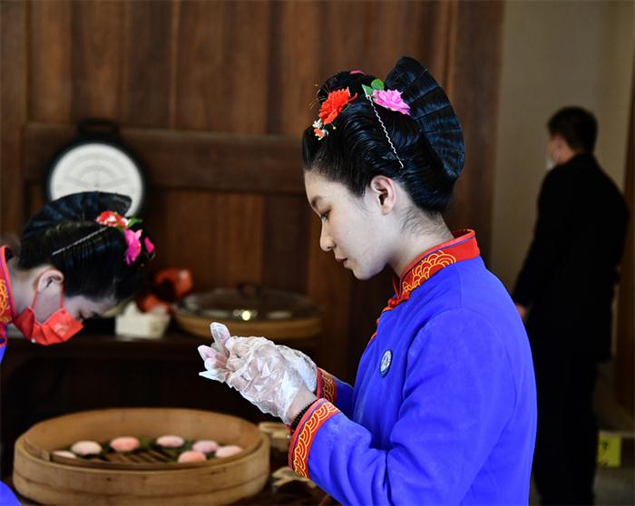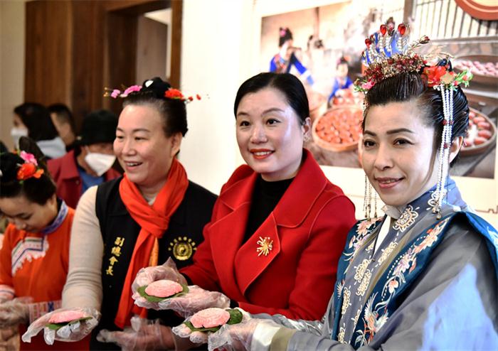在天妃故里遗址公园,来自各地的民俗阵头齐聚平安塔广场,电音三太子、摆棕轿、十音八乐、踩高跷……你方唱罢我登台,精彩的演出与喜气洋洋的元宵氛围令参加活动的两岸妈祖敬仰者沉浸其中,流连忘返。其中,梳妈祖头、贡品制作、红团制作、妈祖花制作等非遗技艺展示,吸引了不少台胞驻足体验,近距离感受非遗项目的独特魅力。
