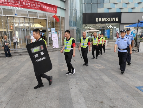 青羊公安警务工作服务站太升南路站社区民警与街道综治巡逻队日常巡逻。邵勇 摄