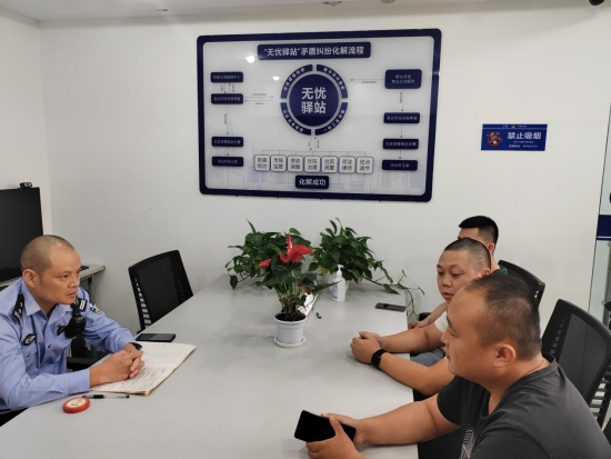 青羊公安警务工作服务站太升南路站内“无忧驿站”民警为商家调解矛盾纠纷。邵勇 摄