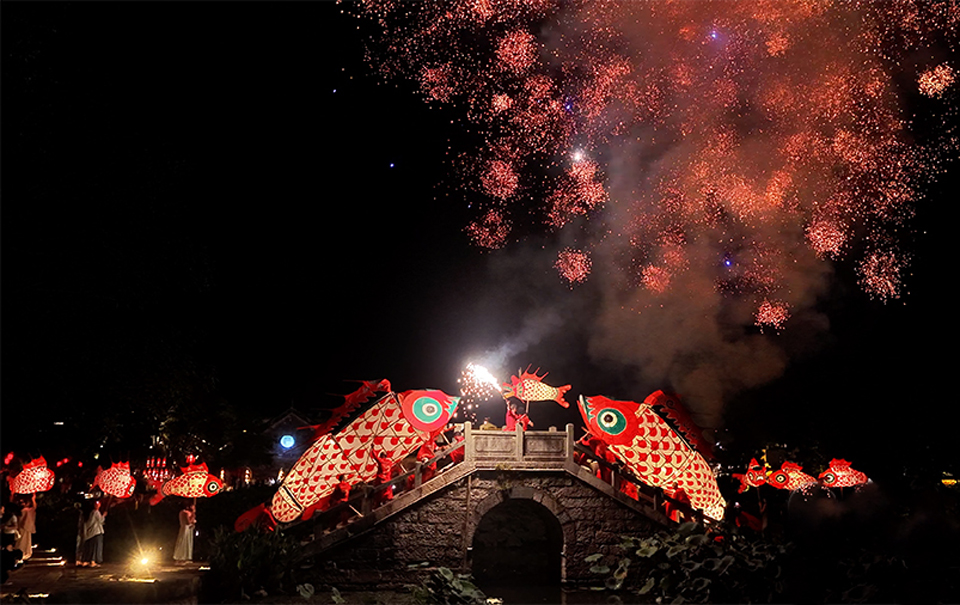 人民网黄山10月8日电 (郭昊)国庆假期,黄山市徽州区呈坎鱼灯表演活动吸引了大量游客前来观赏。据了解,今年以来,呈坎村通过举办徽州鱼灯、舞草龙、徽剧等展演活动,将永兴湖的自然景观与千年社戏文化深度融合,成功打造“盛世徽州、呈坎社戏、一夜鱼龙舞”沉浸式文旅体验产品。2025年累计接待游客约120万人,其中夜游游客38万人,同比增长200%,带动周边民宿入住率达到96%以上,周边新增汉服旅拍、非遗文创店、咖啡店等20余家文旅新业态。