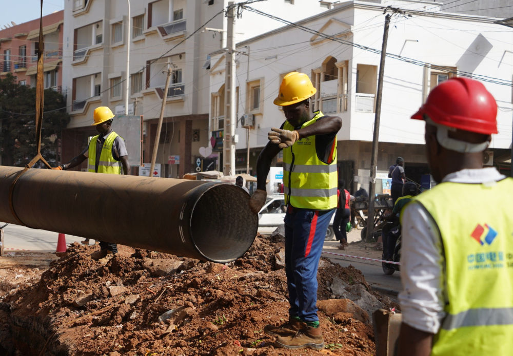 11月1日,当地工人在塞内加尔首都达喀尔的供水项目工地工作。塞内加尔位于非洲西部,气候炎热,首都达喀尔一直面临水资源短缺困境。同时,由于达喀尔市供水管网老旧,管道锈蚀、断裂和渗水漏水情况严重,大量水资源被浪费。为解决这些难题,由中国电建集团港航建设有限公司承建的达喀尔供水工程项目于2021年9月正式启动。项目对达喀尔市区的供水管道加以改造,旨在有效减少水资源浪费,提高水资源利用率,为当地居民提供稳定的用水保障。今年10月,达喀尔的部分街区供水管道已翻修完毕,帮助当地居民告别了用水难。新华社记者 王子正 摄