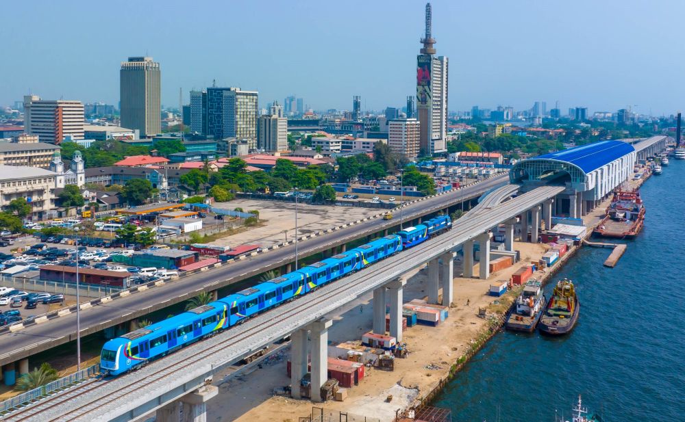 9月4日,由中国土木工程集团有限公司承建的拉各斯轻轨蓝线项目一期开通商业运行。这是西非第一条由中国企业自主设计、建造、施工、运营的电气化城市轻轨交通项目。该项目全长13公里,包括5个车站,是第一条穿越拉各斯西部人口稠密地区的铁路基础设施。这是2022年12月21日在尼日利亚拉各斯拍摄的轻轨蓝线上的列车。新华社发(托普·阿尤库 摄)