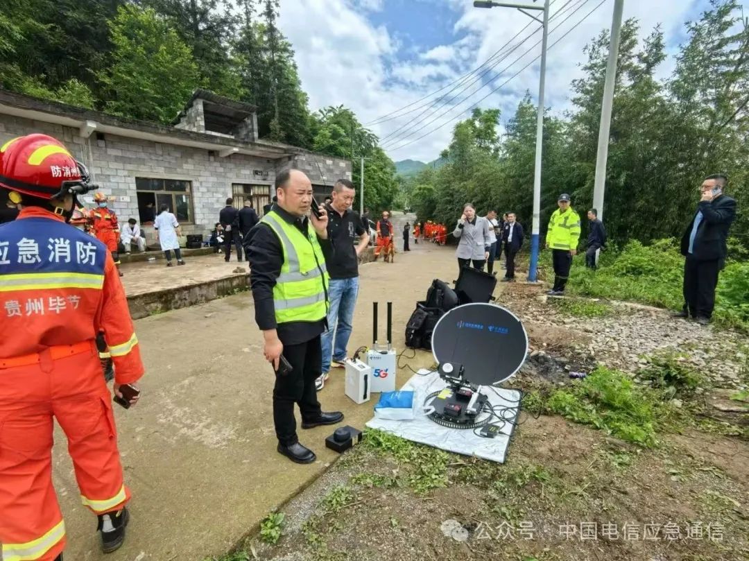 中国电信集团应急管理部、中电信应急通信公司指挥部调度毕节电信公司多名应急保障人员携带卫星便携站和卫星电话前往滑坡现场执行保障,调度多名抢修人员和高通量应急通信车前往果瓦乡执行网络抢修工作。