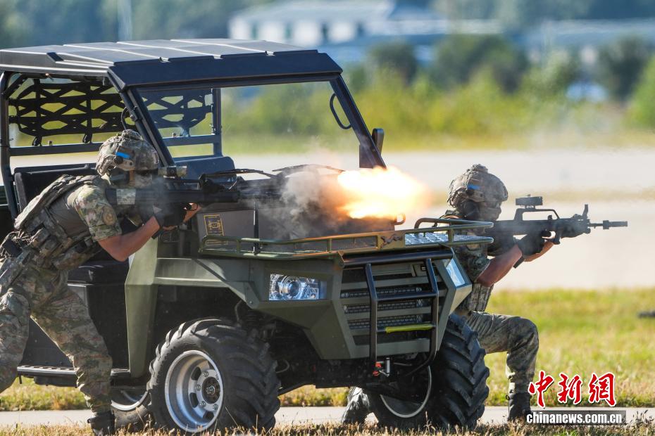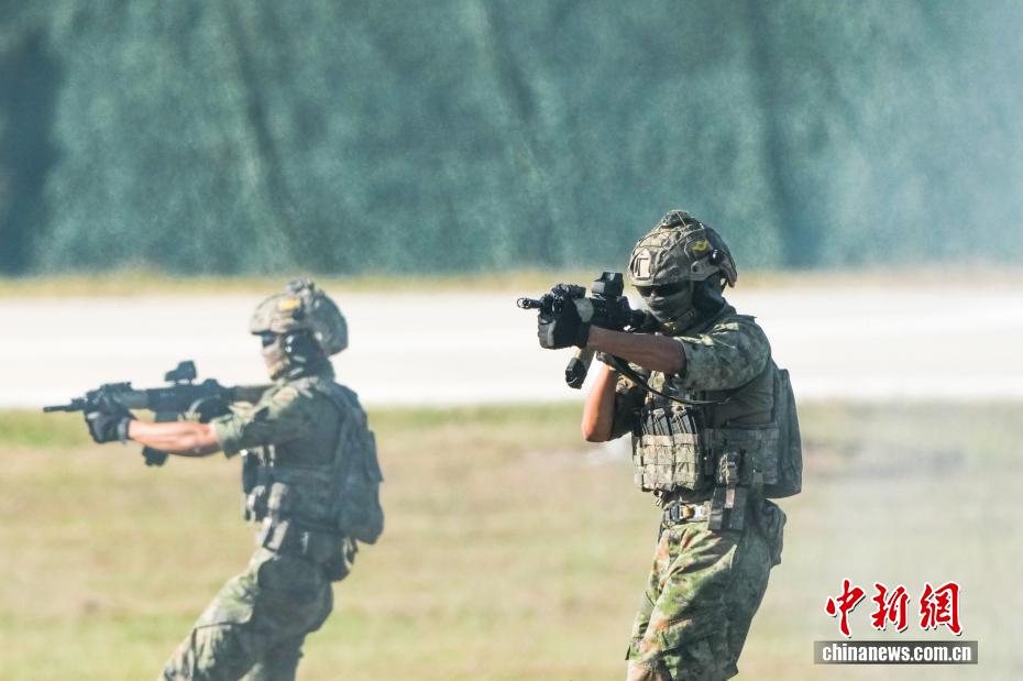 9月21日,在位于吉林长春的2025空军航空开放活动和长春航空展现场,上演了一场空降兵反恐突击行动展示。中新社记者 张祥毅 摄