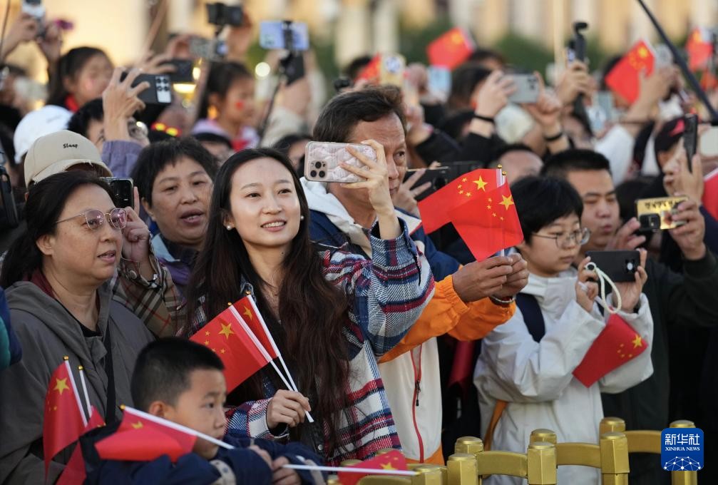 10月1日清晨,隆重的升国旗仪式在北京天安门广场举行,庆祝中华人民共和国成立76周年。