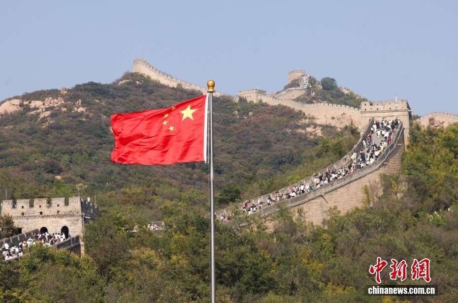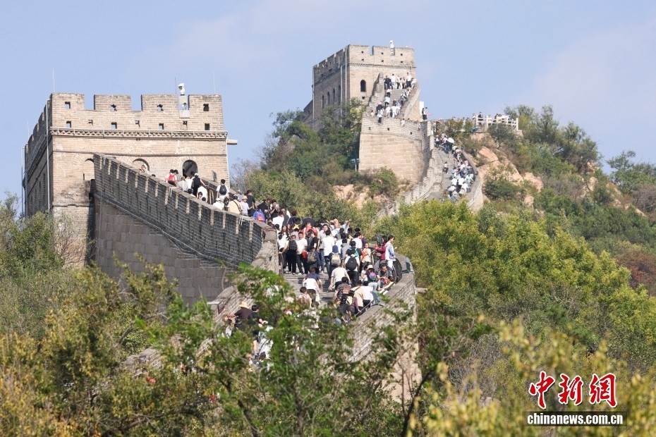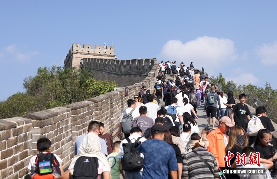 10月2日,国庆中秋假期第二天,北京八达岭长城景区人气旺。中新社记者 贾天勇 摄