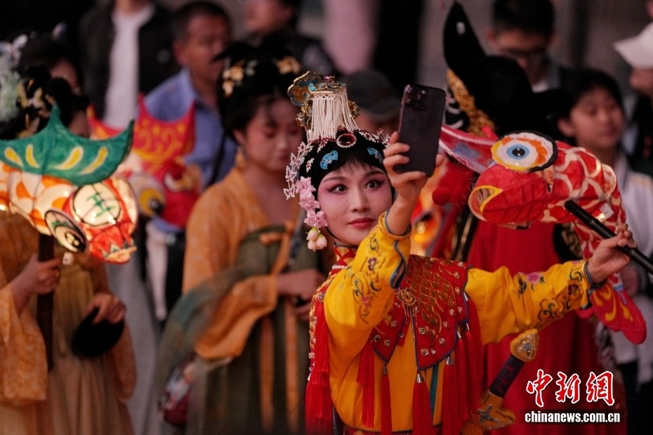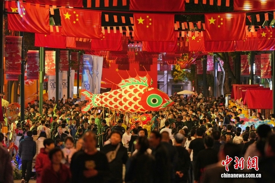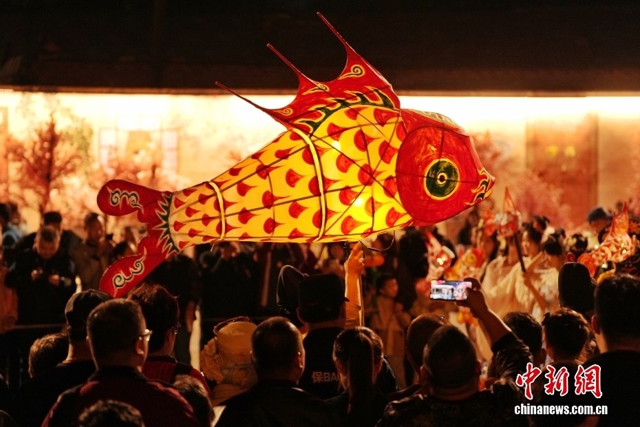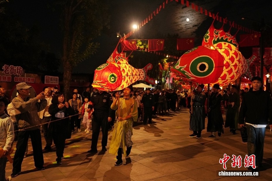 10月6日,中秋节,一场非遗鱼灯巡游在北京长辛店国潮街区上演。中新社记者 张祥毅 摄