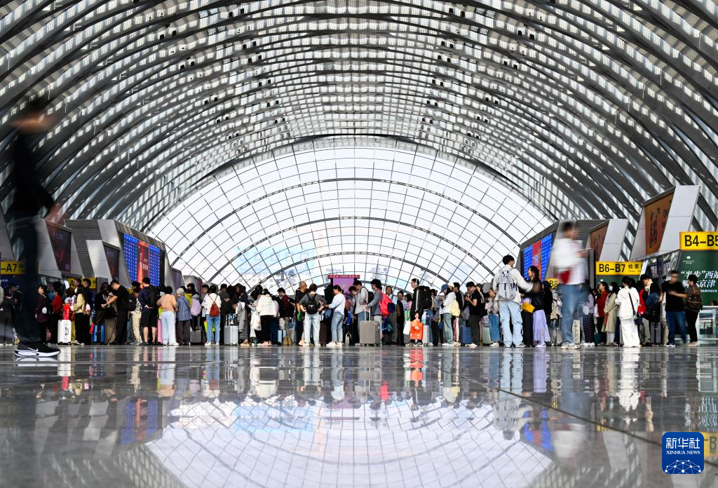10月7日,旅客在山东淄博站等候检票乘车。新华社记者 齐芷玥 摄