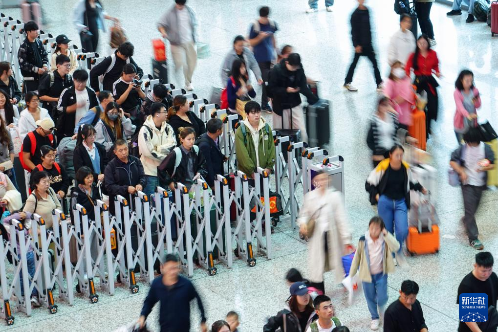 10月7日,国庆中秋假期进入尾声,各地返程客流攀升。