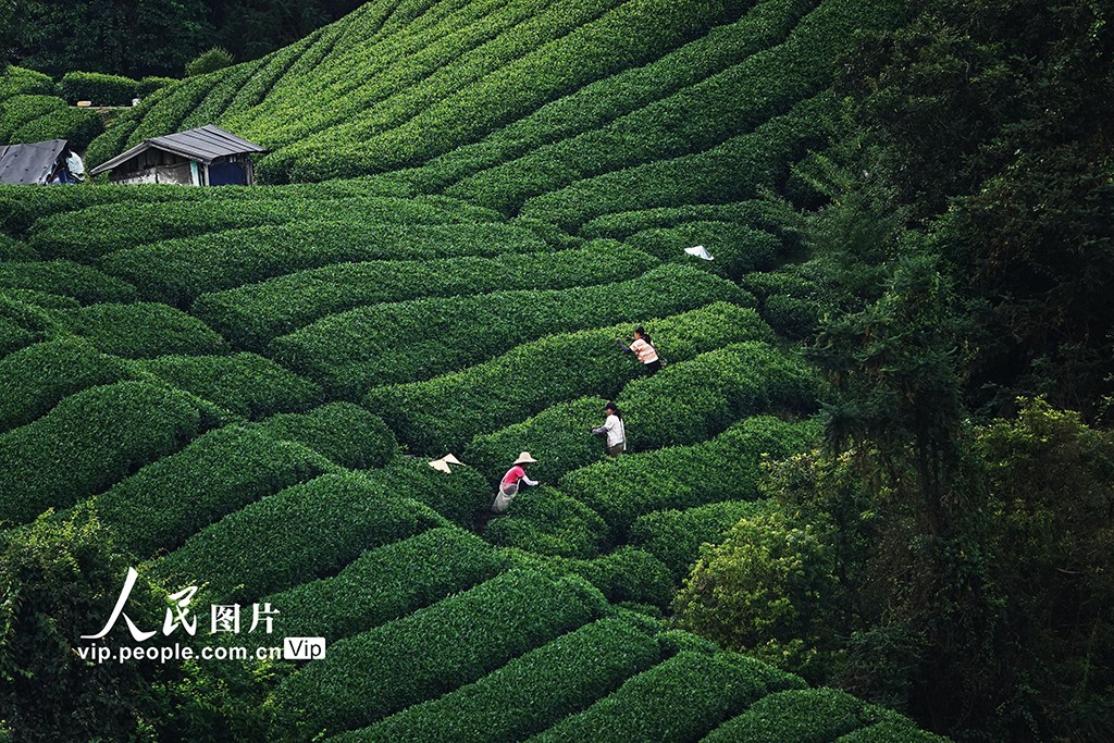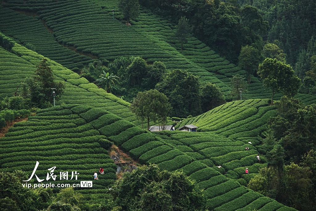 2025年10月8日是寒露节气,广西贺州市昭平县20多万亩茶园进入最后一批秋茶采摘期,众多茶农上山赶采“寒露茶”。喻湘泉摄(人民图片网)