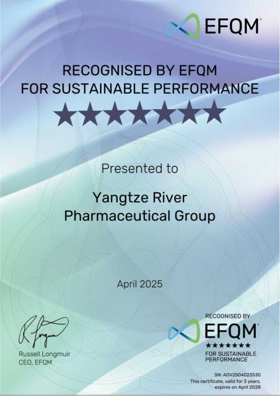 当地时间10月16日晚,EFQM可持续绩效会议暨2025全球奖颁奖典礼在西班牙举办。扬子江药业集团(以下简称扬子江)获颁“EFQM全球奖”RbE现场评审“七星认证”证书。这一沉甸甸的证书,标志着扬子江管理成熟度的再次提升。